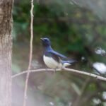 オオルリとコサメビタキが撮れたらまぁ今日はよしとするかと思って帰路に着こうと思ったその時、おそらく今日始めに出会ったオオルリの若オスがまた姿を現しました!ひっそりと身をかがめカメラを構えます。はじめに数羽いたのはおそらくオオルリのメスでした。少し枝が被ったのが残念ですが、後ろからのオオルリ若オスのショットもゲットできてとても大満足です。